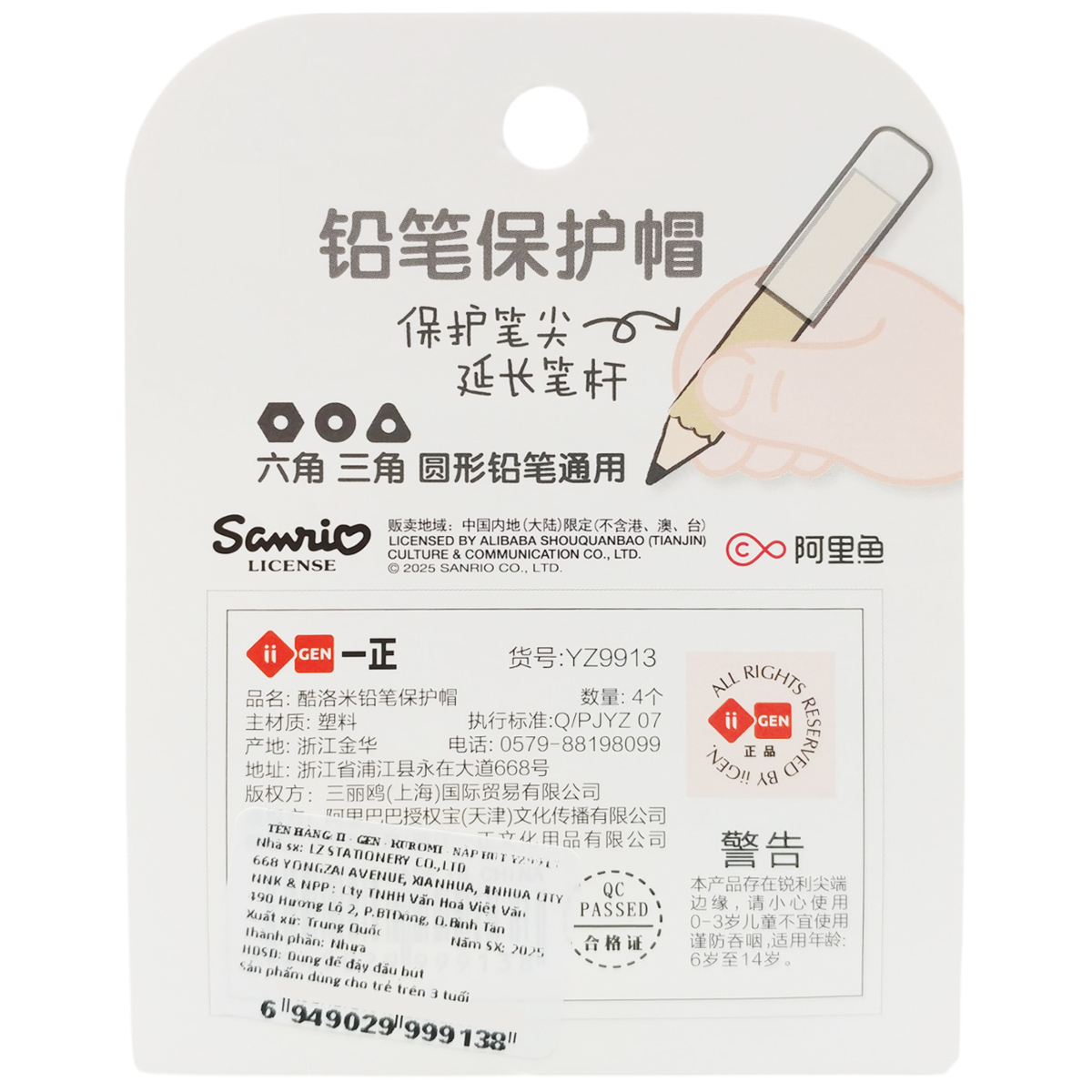 Vỉ 4 Nắp Đậy Bút Kuromi - iiGEN YZ9913